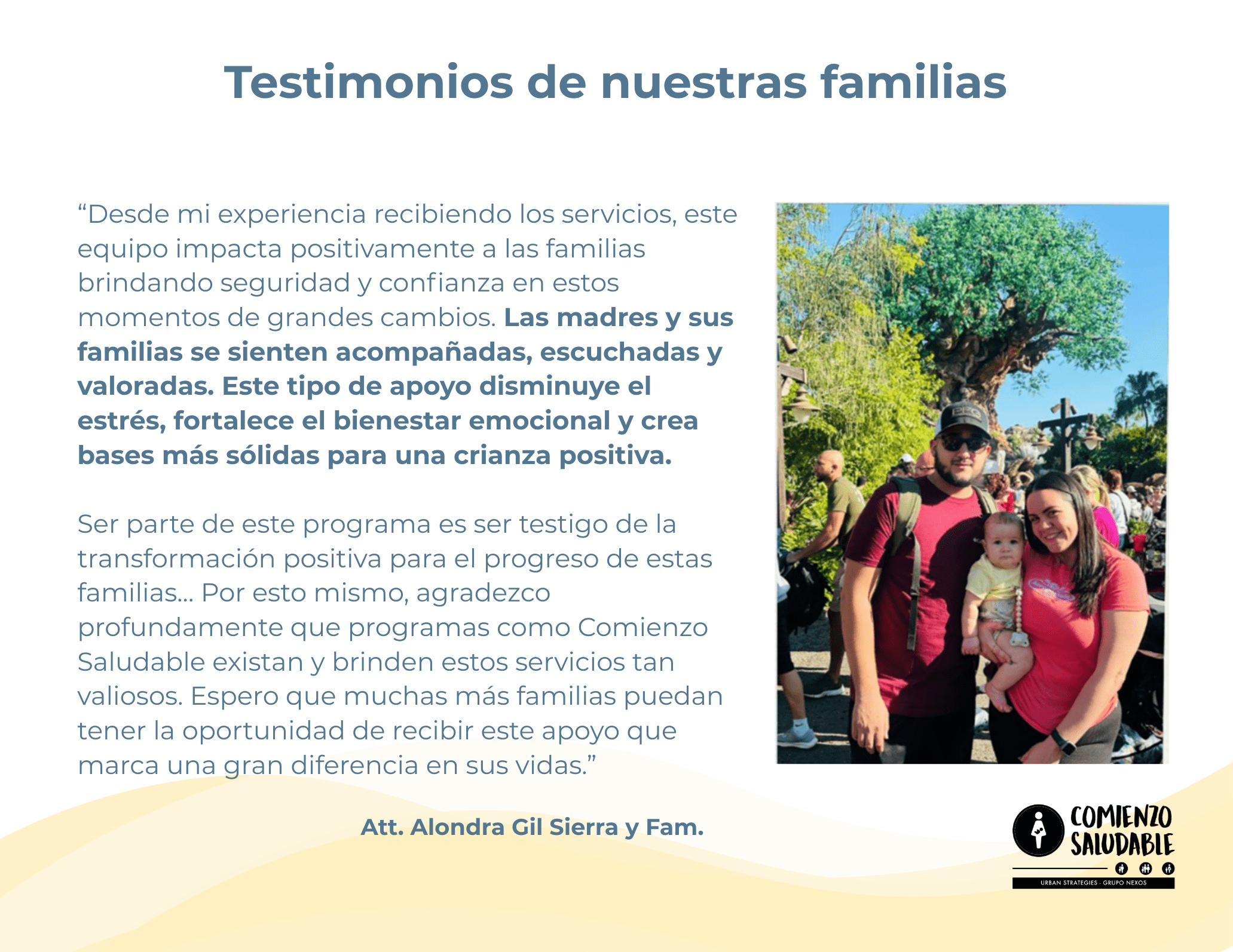 Comienzo Saludable apoya de manera individualizada a cada familia, desde la planificación del embarazo hasta que bebé cumpla los 18 meses.