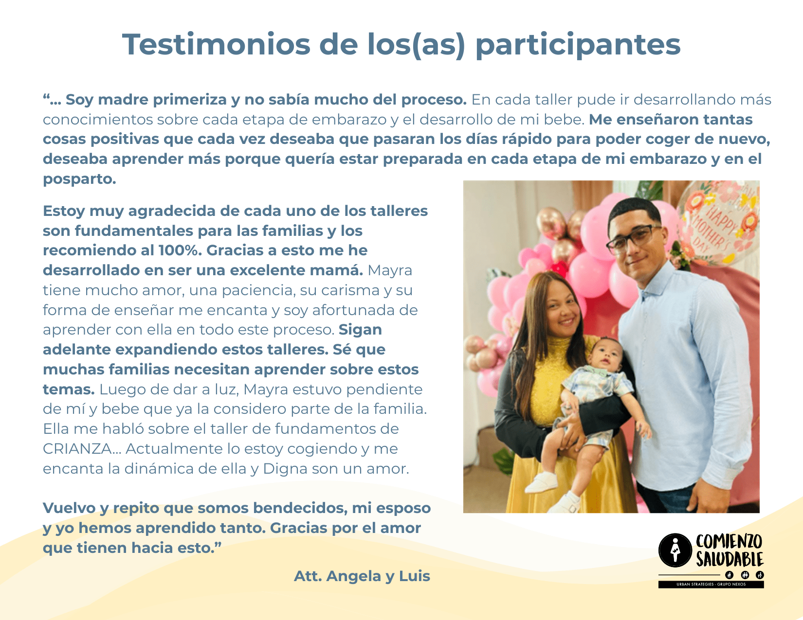Comienzo Saludable es implementado por Urban Strategies y Grupo Nexos cómo parte de la Iniciativa Healthy Start que es financiado por HRSA (Health Resources and Services Administration).